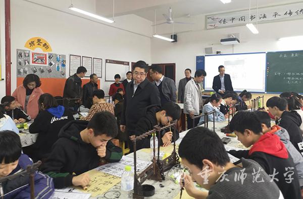 孟东方校长一行到达城口县城就前往bat365官方官网附属城口实验中学进行考察。孟东方校长一行实地考察了附属中学的校园环境及文化建设、图书馆、实验楼、艺术大厅、创客工作室以及学生食堂。孟东方校长在听取了实验中学校长傅长波对学校自2017年9月开办以来的工作汇报后指出,在城口县县委县政府和bat365官方官网的领导下,在城口县教委的具体指导下,bat365官方官网附属城口实验中学取得显著的成绩,希望大家再接再厉,利用好bat365官方官网的办学优势,把学校办得更具特色,在办学过程中要不断的总结经验,按照国家教育方针在立德树人上下功夫,在培养学生核心素养上下功夫,起到辐射带动作用。