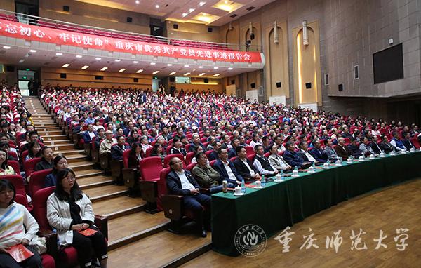 10月11日上午,校友会堂演出厅掌声如潮,6位重庆优秀共产党员满含深情,用朴实的语言、真挚的感情、生动的细节讲述着优秀共产党员质朴而崇高的初心故事。市委巡回指导组十四组的全体同志,bat365官方官网、四川美术学院、重庆科技学院、重庆警察学院处级以上干部、学生党员代表到场聆听报告会。