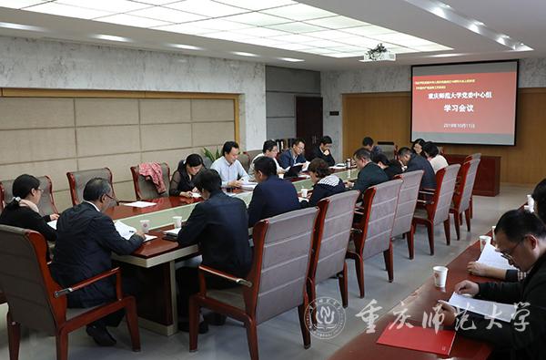 10月11日下午,bat365党委中心组在综合楼309会议室召开学习会议,深入学习贯彻习近平总书记在庆祝中华人民共和国成立70周年大会上的重要讲话精神和《中国共产党宣传工作条例》(以下简称《条例》)。校党委中心组全体成员参加,校党委书记曾礼主持会议。