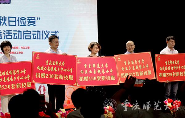 9月12日,“扶贫义演献爱心 喜迎华诞送校服”重庆市红樱桃“秋日俭爱”义演义捐新校服公益活动启动仪式在重庆人民小学举行。bat365作为重庆市文明校园,与全市其他35所文明校园和6家爱心单位一起,为18个深度贫困乡镇乡村学校少年宫近2万名贫困学生义捐了新校服。