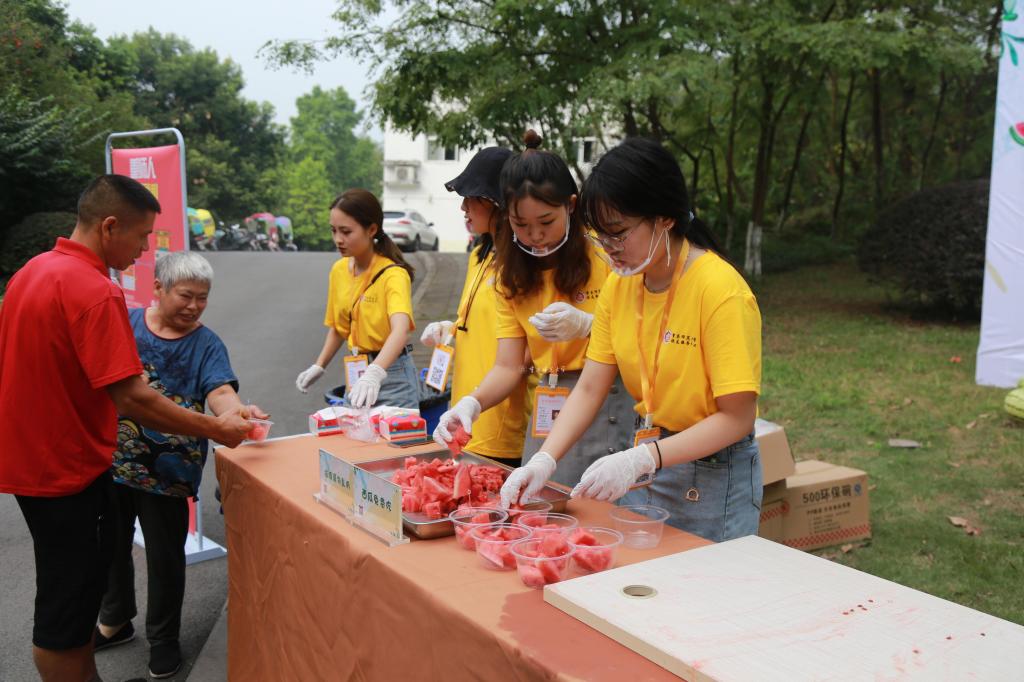“用心又暖心!”天气炎热,外联办与校友会为等候在博雅楼迎新点外的学生家长送上爽口的西瓜,此举让家长们纷纷点赞。2019年是校友会第一次参与迎新工作,秉持“来了就是重师人”理念,校友会为新生与家长免费提供手绘地图册、饮用水与西瓜,还印制了校友二维码地图,新生扫码便可加入校友会并找到自己家乡的校友。