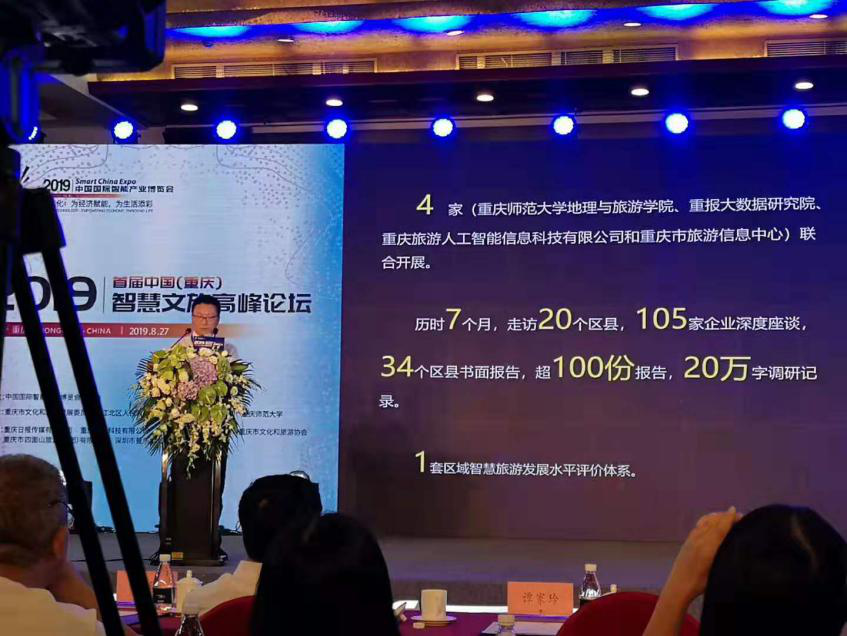 同时,bat365还积极参与承办了2019首届中国(重庆)智慧文旅高峰论坛。论坛上,以重庆市全域智慧旅游协同创新中心为依托,bat365地理与旅游学院牵头,与重报大数据研究院、重庆市旅游信息中心、重庆旅游人工智能科技有限公司组成课题组,联合发布了《2019重庆智慧旅游蓝皮书》。