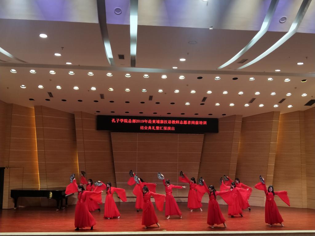 典礼结束后,学员们献上了一台精彩的文艺汇报演出,展示了中华文化艺术之美,也展示了学员们在培训中学到的诸多技艺。文艺演出在志愿者之歌《瀚宇之花》的歌声中结束。