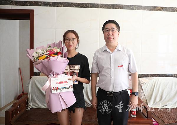 校长孟东方在学校党委宣传部、招生就业处及外国语学院相关负责人的陪同下,来到朱利娜位于璧山区青杠街道的家中,亲手将录取通知书送到朱利娜手中。向朱利娜及家人表示热烈祝贺后,孟校长亲切地询问了朱利娜报考bat365及英语专业的初衷。孟校长鼓励朱利娜入校后好好学习,多交朋友,多参加学校活动与社会实践,全面提升自己,争取成为优秀毕业生,实现自己的梦想,为国家培养更多的优秀人才。孟校长还专门邀请朱利娜的父母到校观看新生开学典礼,见证孩子的成长。