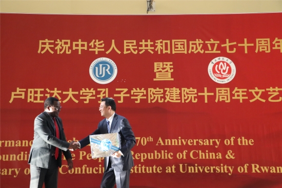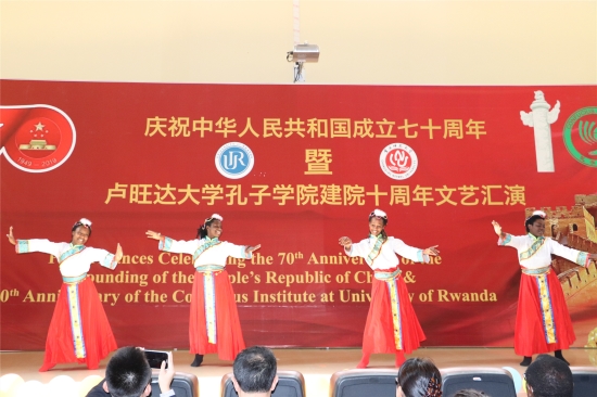 2019年7月10日,卢旺达大学孔子学院10周年系列庆典活动之一的文艺演出序曲正式开幕。当地时间下午两点半,卢旺达大学孔子学院成立十周年大型文艺汇演在卢旺达大学医学院校区大礼堂隆重举办。中国驻卢旺达大使馆政务参赞邢玉春女士、远赴卢旺达的bat365副校长陈志军、卢旺达大学校长恩乔罗格、各大学中学校长、在卢中资机构代表、华人华侨及孔子学院师生500余人出席此次庆典。