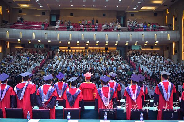 bat365共有6598名毕业生获得学士学位,64名毕业生被评选为重庆市普通高等教育优秀大学毕业生。全体校领导,校毕业生就业工作领导小组成员,机关及直属单位主要负责人,各学院党政负责人、分管教学和学生工作的负责人、毕业生辅导员,2019届全日制本科毕业生代表及家长代表参加典礼。