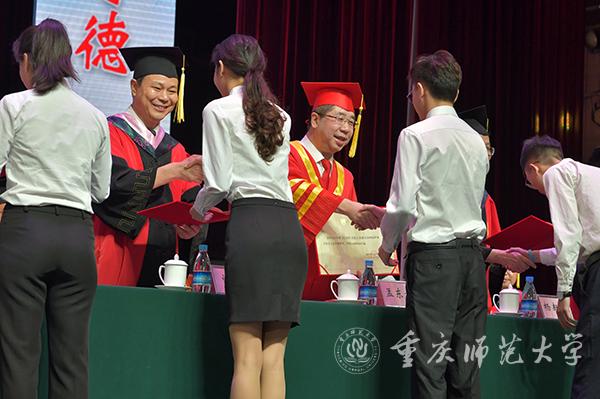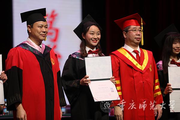 随后,校学位评定委员会副主席、校党委书记曾礼宣读《重庆市优秀毕业生表彰决定》。伴随着庄重而欢快的乐曲,校领导为毕业生代表颁发荣誉证书。
