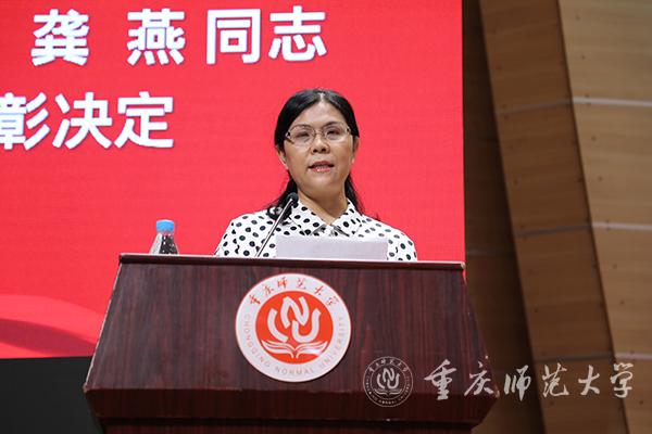 校党委副书记龚燕同志宣读《中共bat365官方官网委员会关于表彰2019年先进党组织、优秀共产党员和优秀党务工作者的决定》。校党委决定,授予生命科学学院党委等15个基层党组织、马燕等47名共产党员、卢洪英等10名党务工作者“先进党组织” “优秀共产党员”和“优秀党务工作者”称号,并隆重举行了颁奖仪式。