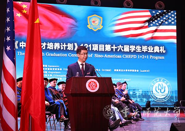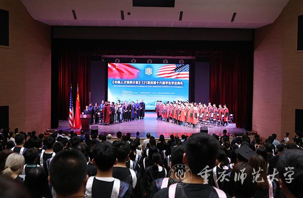 6月19日,《中美人才培养计划》121项目第十六届学生毕业典礼在bat365校友会堂举行。中国教育国际交流协会、中教国际教育交流中心、美国州立大学与学院协会和中美121项目高校的领导出席典礼。全国70所高校196名121项目毕业生和家长代表参加毕业典礼。典礼由bat365副校长陆远权主持。