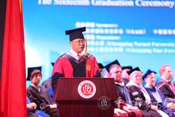 随后,美国北亚利桑那大学国际事务副校长林言成、中教国际教育交流中心121 项目总监王颖博士主持121项目毕业生授位仪式。参会的121项目全体毕业生身着学士服,由其就读的中美两国高校校长和导师授予两校毕业证书及学士学位。