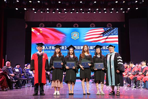 授位仪式后,中教国际教育交流中心印凯主任宣布“中国教育国际交流协会、中教国际教育交流中心、美国州立大学与学院协会关于表彰《中美人才培养计划》121项目2019年度优秀毕业生的决定”,并同美国特洛伊大学校长杰克·霍金斯博士一起为 2019 年度优秀毕业生代表颁奖。