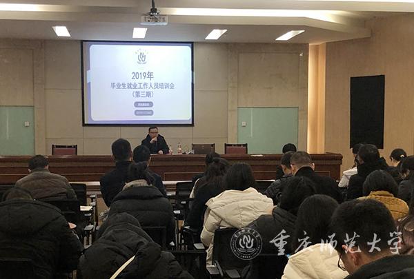 12月24日,2019年就业工作人员第三期培训会在校友会堂317宣讲厅举办。招生就业处组织,各学院就业工作分管领导、就业工作专干,2020届和2021届毕业班辅导员(班主任)共计80余人参加了培训。