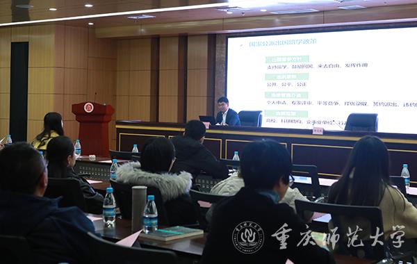12月17日下午,2020年国家公派出国留学培训会在博雅楼503会议室举行,国家留学基金委出国留学选培部副主任杨祥义受邀介绍2020年国家公派出国留学的有关政策和申报指南。培训会由副校长陆远权主持,各学院涉外工作分管领导、涉外工作秘书、近3年参加出国留学英语培训的教职工和新进教职工以及有意申报2020年国家公派出国留学项目的师生代表近150人参加会议。
