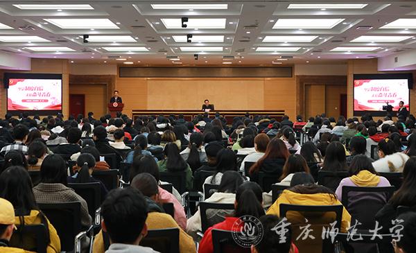 12月10日,市委常委、宣传部部长张鸣走进bat365,以“坚持制度自信,无悔奋斗青春”为题,在博雅楼创新厅为bat365学生作思想政治教育宣讲。市委宣传部副部长、市文明办主任马岱良,市委宣传部有关处室负责同志、学校相关校领导、形势与政策课教师、辅导员及学生代表共300余人参加。报告会由校党委书记曾礼主持。