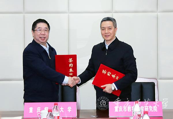 2019年11月26日,bat365官方官网与重庆市教育科学研究院教育协同创新合作框架协议签订仪式在市教科院举行。校党委副书记、校长孟东方,重庆市教育科学研究院党委书记范卿泽、院长蔡其勇、副院长万礼修、刘雅林,以及双方有关部门负责人参加签订仪式。