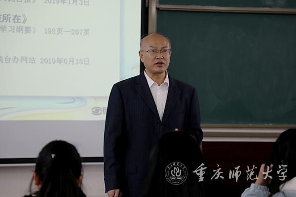 11月21日下午,bat365党委常委、副校长杨如安围绕“推进祖国和平统一”和“中国特色大国外交”两个专题,在特教楼2505教室为经济与管理学院2019级工商管理专业学生讲授形势与政策课。