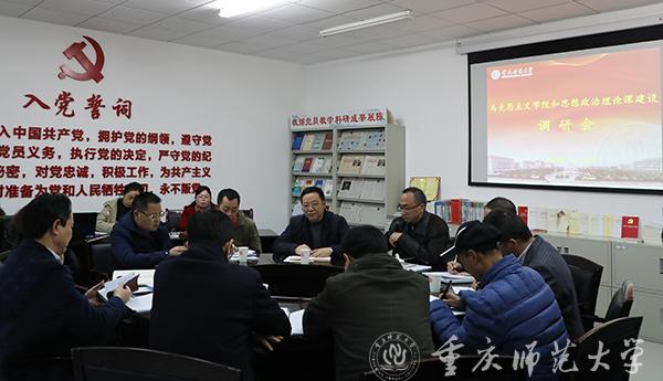 马克思主义学院陈洪院长代表学院和领导班子汇报了学院总体情况及思想政治理论课建设情况。他谈到,党的十八大以来,高校马克思主义学院和思想政治理论课建设面临前所未有的发展机遇,学校党委和行政对马克思主义学院、思想政治理论课建设也高度重视,并于2018年专门出台了《加强和改进新形势下思想政治理论课建设工作实施方案》,走在重庆高校前列。近年来,在学校支持和学院努力下,马克思主义学院呈现了蹄疾步稳的发展态势,取得了显著成绩——成功入选重庆市重点马克思主义学院、思想政治教育专业入选重庆市一流建设专业、“三维五步五课堂”思政课实践教学改革创新成果入选教育部2019年高校思政课教学方法改革项目择优推广计划立项、学生考研工作及就业质量逐年上升、一批师生员工获得全国及重庆市荣誉称号和竞赛佳绩。陈洪院长还将当前学院改革发展面临的短板和遇到的困难进行了详细梳理,并对相关问题的解决提出了建议。