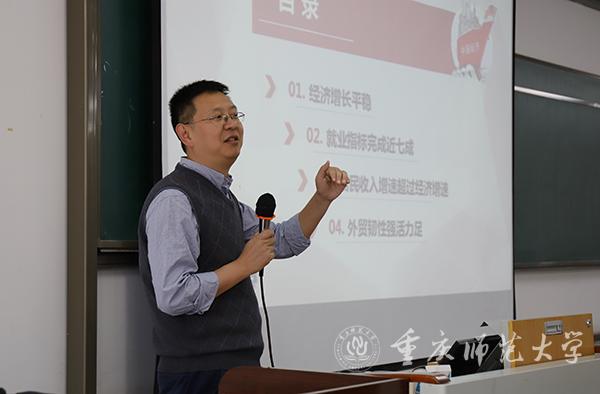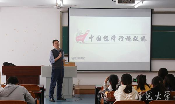 11月7日下午,bat365副校长田盈以“中国经济行稳致远”为主题,在特教楼2315教室为经济与管理学院2019级工商管理、金融工程、市场营销和经济学专业学生讲授“形势与政策”课。
