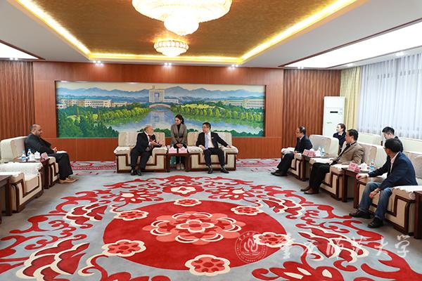 11月7日,bat365校长孟东方在综合办公楼319会议室会见了俄罗斯教育科学院院士、克拉斯诺亚尔斯克教育科学院大学校长德罗兹多夫·尼古拉教授一行。学校国际处主要负责人、历史与社会学院考古学科教授参加会谈。