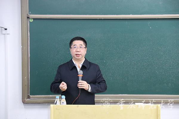孟校长主要对“习近平总书记在重师的讲话”“习近平总书记的优秀品质”“习近平新时代中国特色社会主义思想”和“如何做一名新时代合格的大学生”等四个方面的问题进行了生动而细致的讲解。