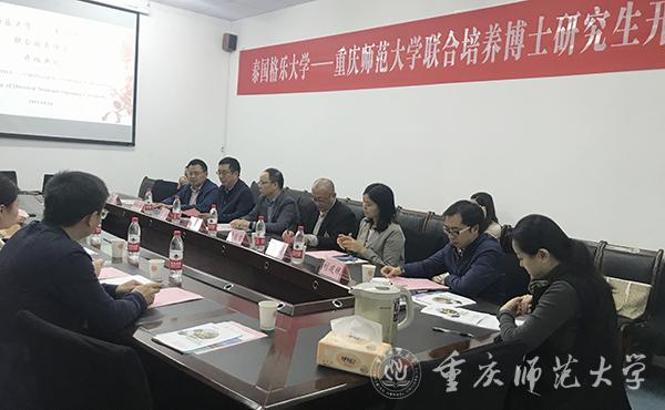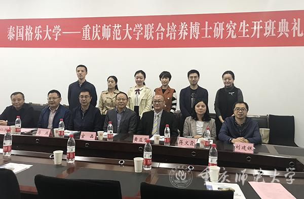 10月24日下午,泰国格乐大学-bat365官方官网联合培养博士研究生开班典礼在bat365砺志楼2317教室举行。泰国格乐大学教育学部教授黄益坚,泰国格乐大学重庆国际事务中心主任蒋文霞,bat365研究生院院长马燕,国际处处长官品,教育科学学院院长申仁洪、书记曹光、教授刘建银出席,中泰联合培养的博士研究生参加了开班典礼。典礼由教科院教师李颖主持。
