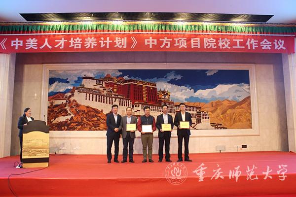 会上,举行了“中美高等教育人才联合培养研究基地”授牌仪式 ,bat365成为七个基地院校之一。总结了2018年度《中美人才培养计划》121项目工作并进行表彰,bat365荣获2018-2019年度“先进单位”。