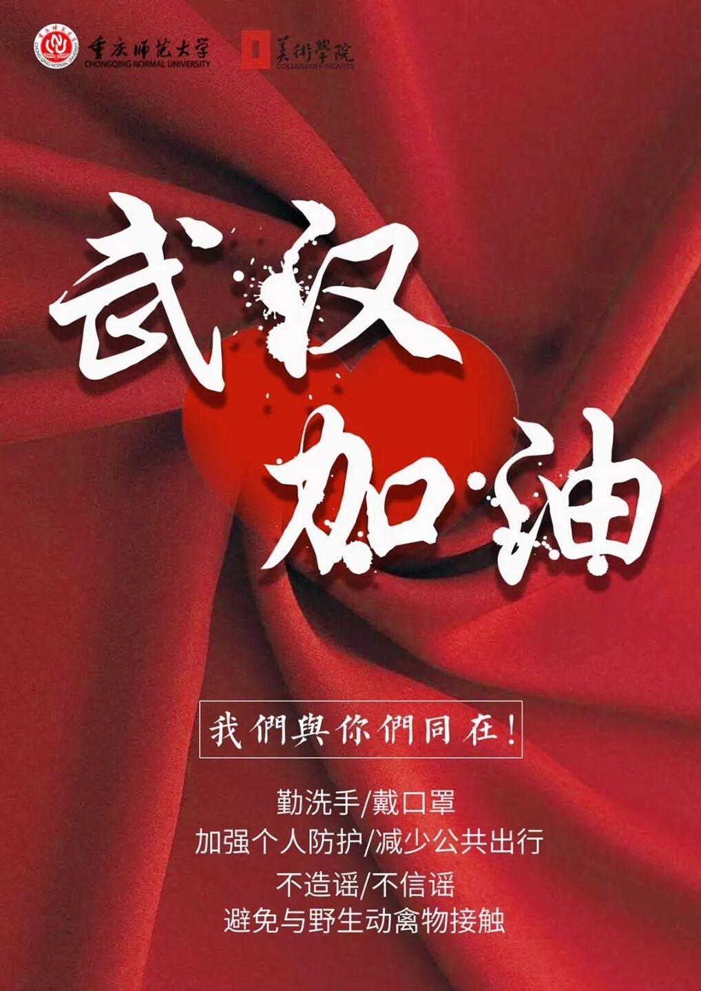 刘鹤宣同学创作的《武汉加油》以代表中国精神和爱心的红色为整体色调,位于海报中心的“武汉加油”四个大字直达人心,鼓舞士气,号召人们坚定信念、同力协契。