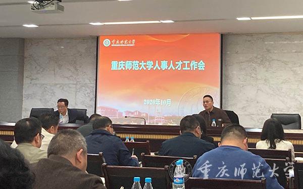 会上,党委教师工作部部长、人事处处长、人才办主任杨江水就人事岗位管理、清理不在岗人员、绩效发放审核、2020年人才引进完成情况和2021年进人计划、人才项目遴选举荐、2020年职称评审、择优选聘专职思政课教师以及教职工疫情防控等七个方面与参会人员进行了交流沟通,并对相关工作做出安排部署。一是全面清理不在岗人员工作。通报了学校历年来就人员岗位管理采取的系列举措:每学期开学要求各单位上报教职工到岗情况、年度考核、2016年和2019年两次全面清理不在岗人员,开展了两轮岗位竞聘并签订岗位聘期合同。传达了市委巡视整改评估组对清理不在岗人员的要求,要求各单位对9类不在岗人员于2020年10月31日前完成全面清理、拉网式排查,做到不留盲区、不留死角。强调各二级单位是本单位教职工劳动纪律的具体管理部门,承担具体管理职责。要加强教职工队伍管理,严肃工作纪律。对于不严格执行劳动纪律单位,学校将追究单位负责人和具体责任人的责任。二是严格落实绩效发放规定。要求各二级单位须严格按照《重庆师发大学进一步规范绩效发放管理办法(试行)》(重师发〔2018〕93号)和《bat365官方官网不纳入绩效工资总量管理的加班费、劳务费发放管理办法(试行)》(重师发〔2020〕74号)的要求执行。学校将常态化审核绩效内、绩效外发放情况。三是仔细筹划人才引进。强调2021年进人计划要结合学科、专业和申博任务对师资队伍建设的要求等,坚持“保基础、补短板、重高端”的工作原则,更加科学合理的制定今年的进人计划,包括本科生、研究生、留学生辅导员的进人计划。各学院及相应职能部门于按规定时间将2021年进人计划报人事处人事科。四是人才项目遴选举荐。通报了2020年人才项目申报、推荐和入选的情况,并介绍了由市委、市政府主办的2020年重庆市“英才大会”安排给学校的相关工作任务及要求。五是做好职称评审工作。会议对2020年职称评审的补充规定及政策变化作了详细说明,并强调严格按照有关文件精神执行,做到严格程序、严格审核、严格资料、认真负责。六是选聘专职思政课教师。会议详细解读了择优选聘专职思政课教师的当前形势,以及选聘范围、条件、程序和要求等。要求各相关单位严格按照文件精神择优选聘专职思政课教师。七是常态化抓好疫情数据填报工作。会议通报了近期教职工疫情防控“零报告”“日报告”的总体情况和存在的相应问题。强调个人要及时真实填报个人信息,各单位专人负责数据填报工作。各单位要防止懈怠情绪,切不可掉以轻心、麻痹大意,要常态化抓好疫情防控工作。