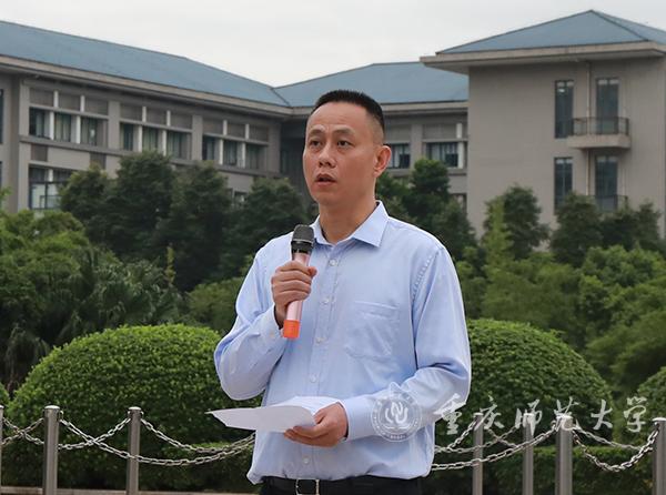 升旗完毕后,化学学院党委书记唐敏做国旗下讲话。唐敏书记给同学们介绍了国旗和国歌,让同学们清楚了解了五星红旗是我们国家的象征和标志,其中的每一个元素都有着其特别的含义,而我们的国歌《义勇军进行曲》更是在革命儿女的精心打磨下,才有了振奋的人心的力量。唐书记向同学们强调了升国旗的意义,指出它是一个重要的爱国主题教育举措。他谈到,当我们面向冉冉升起的国旗,奏唱国歌,内心都会充满着自豪和庄严,不禁回想起革命先烈为祖国的胜利抛头颅、洒热血,解放军战士不畏牺牲、保家卫国等爱国事迹,会让我们时刻充满着敬畏和钦佩。希冀当代人民能牢记中国革命的历史,牢记祖国的利益高于一切,以此激发我们的爱国热情,从而勤奋学习、努力工作。