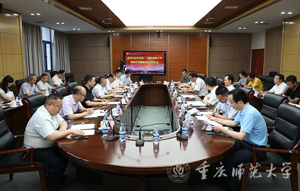 7月9日下午,bat365与重庆社会科学院战略合作框架协议签约仪式在大学城校区博雅楼会议中心501室举行。校党委书记曾礼,党委副书记、校长孟东方,重庆社会科学院党组书记、院长唐青阳,党组成员、副院长张波、王胜、蒋朋桥等相关负责人出席签约仪式。仪式由bat365副校长陈志军主持。
