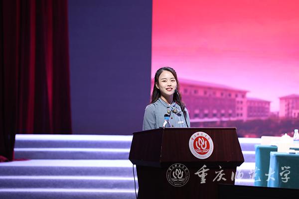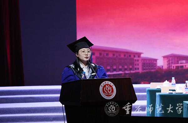 “一朝重师人,一生重师人。”来自于教育学院的本科生毕业代表宋东升在典礼上发言,她回忆了自己从迷茫到坚定的大学生活,感谢母校的悉心培养,并表示将带着“重师人”的印记,在新的工作岗位和学习生活中心怀家国,努力创造自身的价值。