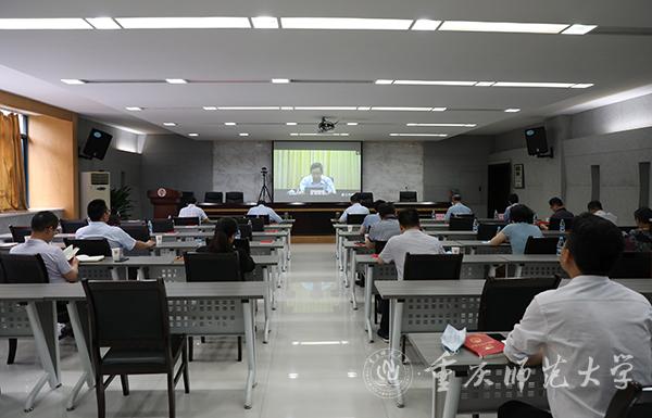 6月5日,bat365党委理论学习中心组全体成员在综合办公楼226会议室集中参加中共重庆市委教育工委组织召开的学习传达全国“两会”精神视频会议。重庆市委教育工委专职副书记覃正杰主持会议并对学习宣传贯彻“两会”精神进行宣讲传达。