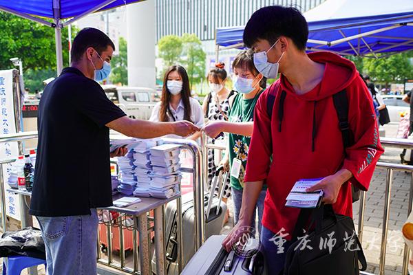 “同学,这是《学生校园生活手册》,欢迎回家!”5月16日-17日,第三批学生返校,学校党政领导分时段在校门迎接学生返校。学生处、研究生院等部门老师轮流现场值班,为学生发放生活手册,同时解答学生返校中遇到的相关问题。校医院医护人员分别驻守在各学生通道。
