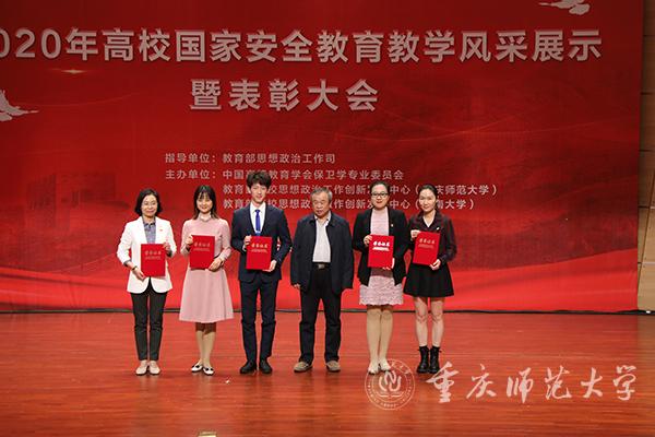 大会现场,中国高等教育学会保卫学专业委员会秘书长谭琳宣布了2020年高校国家安全教育教学风采展示获奖名单。获得全国一等奖的5名优秀选手以现场说课的形式,讲述如何让青年大学生上好总体国家安全观这门课程。