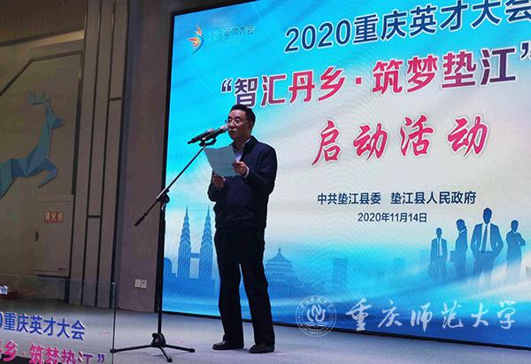 2020年11月14日,由中共垫江县委、垫江县人民政府举办的“智汇丹乡•筑梦垫江”专场活动启动仪式在重庆市大学生就业创业公共服务中心举行。bat365党委副书记陈志军应邀参加活动,并代表高校致辞。