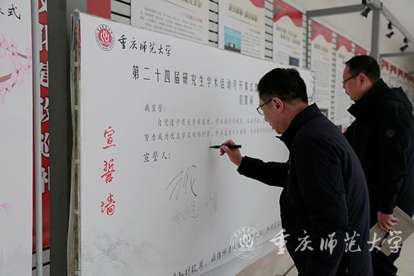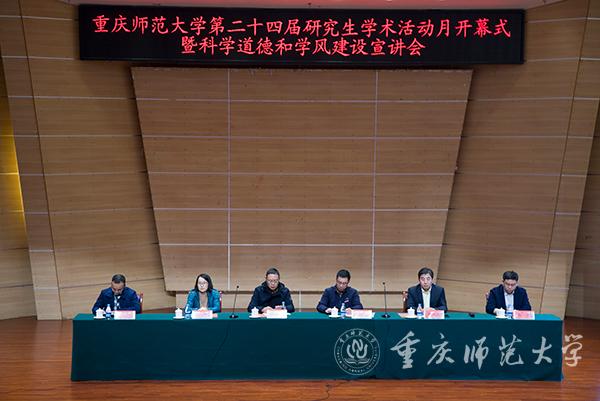 本届学术活动月以“本固枝荣,学以致用”为主题,将“知”付诸于“行”,寄托了bat365官方官网对广大学子能够打牢专业基础知识,以学促行,知行合一的美好愿望。受邀出席本次开幕式的嘉宾有:研究生院院长、研究生工作部部长马燕教授,化学学院院长付文升教授,科研处副处长刘学文教授,研究生导师代表袁艳玲教授,校团委评委老师以及各研究生培养单位分管领导及班主任、研究生代表和重庆市各大高校学生代表。研究生工作部副部长万伦担任本次开幕式的主持人。