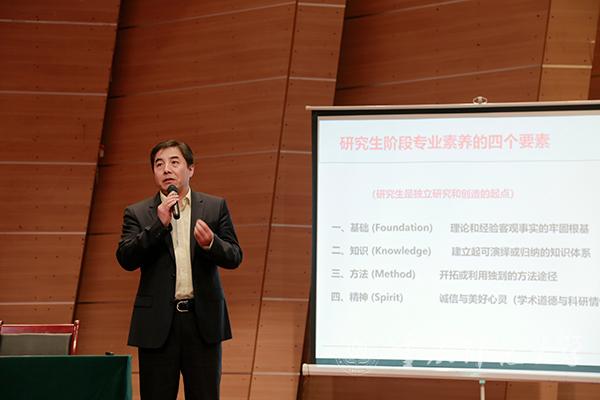 开幕式结束以后,化学学院付文升院长进行了科学道德和学风建设宣讲。他提出研究生应具备基础、知识、方法、精神四大专业素养,强调了学术道德、制定职业发展规划的重要性,希望研究生们功崇惟志,砺行致远。