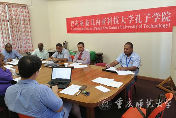 巴新时间10月15日上午,巴布亚新几内亚科技大学召开孔子学院设立之后的第一次专题工作会议,bat365代表就与巴新科大合作共建的孔子学院相关规章、制度、措施、标准的运行实施发表意见。本次会议由Renagi校长主持,行政副校长,教学副校长,外事处长,财务处长,信息与通讯处长及孔子学院外方院长David Chen、中方院长张显博士参加会议。