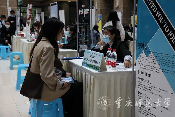 4月9日,bat365官方官网与重庆市人才大市场集团有限公司(重庆人才网)在博雅楼大厅联合举办了“就业促进百日行动”之“拼搏•不负青春”2021届毕业生春季大型双选会。