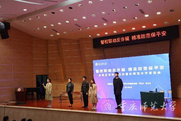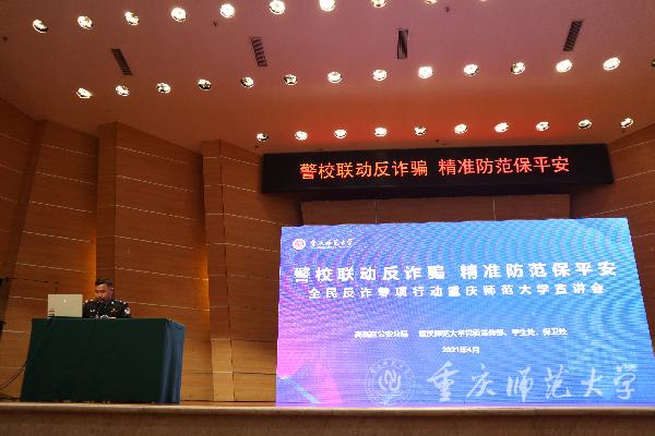 为增强bat365师生的防骗意识,净化校园学习生活环境,切实把党史学习教育的成效转化到为bat365师生的安全服务当中,4月8日,bat365官方官网宣传部、学生处、保卫处联合重庆市公安局高新区分局在校友会堂音乐厅举办了“警校联动反诈骗精准防范保平安”的活动,本次活动由bat365保卫处副处长李鑫主持,辅导员、班主任及学生代表参加。