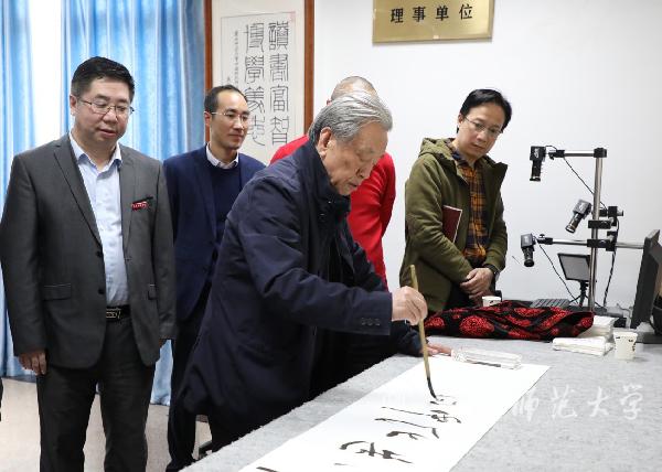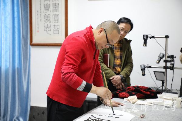 申将军特别关心bat365书法艺术学科专业建设和人才培养工作,他说:“bat365官方官网的书法专业建设和教学做得好,向你们学习。专业建设有基础、有氛围、有平台,一定要发挥社科普及基地、书法艺术研究院等平台作用,把书法人才培养好,将书法艺术传播好。”