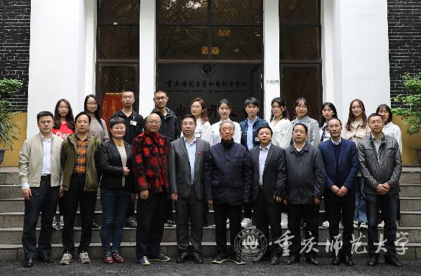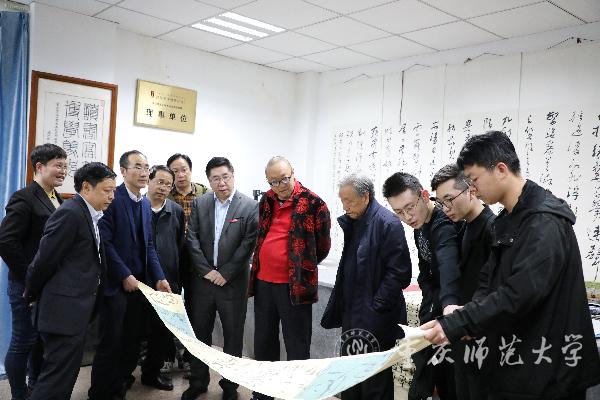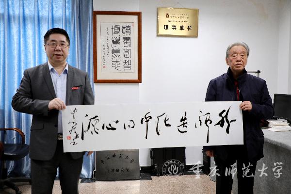 2021年4月8日下午,原中国书法家协会副主席、原解放军艺术学院院长、书法家申万胜将军和书画家邓晓岗一行莅临bat365北碚校区,与师生就书法艺术学科专业发展、书法艺术赏析、社科普及基地建设和书法艺术研究院建设等方面进行深入交流。学校校长孟东方,初等教育学院党委书记李晓燕、院长林长春等班子全体成员和书法系主任、书法艺术研究院负责人郭继明等陪同申万胜将军一行。