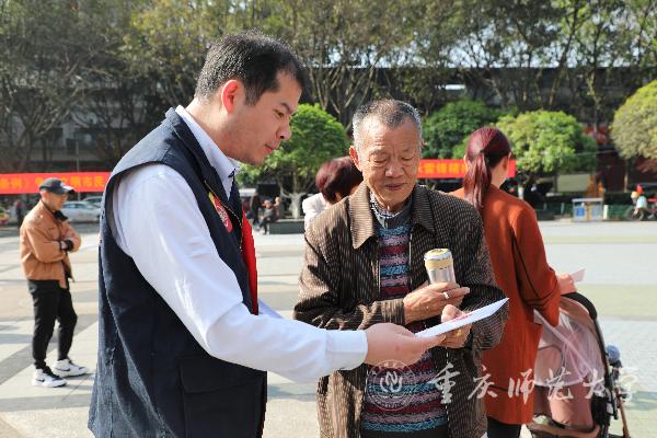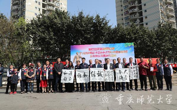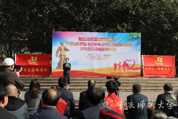 3月28日,春光明媚,艳阳高照。bat365青年志愿者总队、校党委宣传部新闻中心和重师街舞社师生代表前往渝北区龙脊广场,参加由重庆市“雷锋的士”郭明义志愿服务支队举办的学习贯彻《重庆市文明行为促进条例》暨学雷锋志愿服务活动,重庆市文明办、市交通局相关领导出席活动。