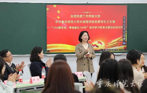 “站在中国共产党成立100周年的重大历史节点上,学习党史、以史为鉴,是广大青年提高思想政治素质的必修课。”外国语学院党委书记王放介绍到,外国语学院深化“两个结合”:结合样板支部建设、结合专业特色,发挥引领作用,创新学习方式,高质量开展党史学习教育。