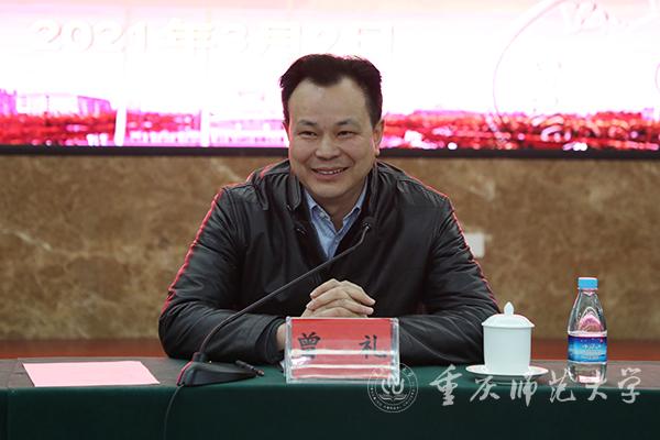 会议最后,学校党委书记曾礼作总结讲话。曾礼书记在讲话中再次强调了学校党委安排孟东方校长兼任马克思主义学院院长的重要性,表明了学校党委要把马克思主义学院建设好、发展好的态度和决心,同时也是学校党委贯彻党中央和市委要求,加强马克思义学院建设的重要举措。借此机会,他对马克思主义学院全体教职工提出了三点希望:一是要带头深学笃用习近平新时代中国特色社会主义思想,带头增强“四个意识”、坚定“四个自信”、做到“两个维护”,带头做表率,争做“四有”好老师;二是要振奋精神、奋发有为,马克思主义学院发展进入到新起点,希望马克思主义学院全体教职工要有大局意识,加强团结,抓住大政策、大背景、大气候,聚焦学院和个人事业,齐心协力推动学院发展;三是对班子提出了要求,他希望班子在孟东方校长的带领下要加强团结,带头示范,奋发有为,担当作为,进一步增强学院的凝聚力,努力提升马克思主义学院的建设水平。