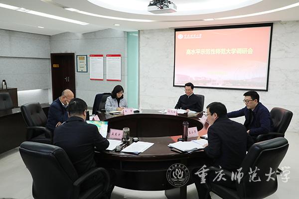 2021年2月25日,重庆市教委二级巡视员刘先海、师范教育处处长黄伟、副处长王晋到bat365调研高水平示范性师范大学建设。校党委副书记、校长孟东方,副校长杨如安、孟小军,党政办公室、发展规划处、教务处、人事处、科研处、研究生院、职教师资学院主要负责人参加了调研会。调研会由刘先海主持。