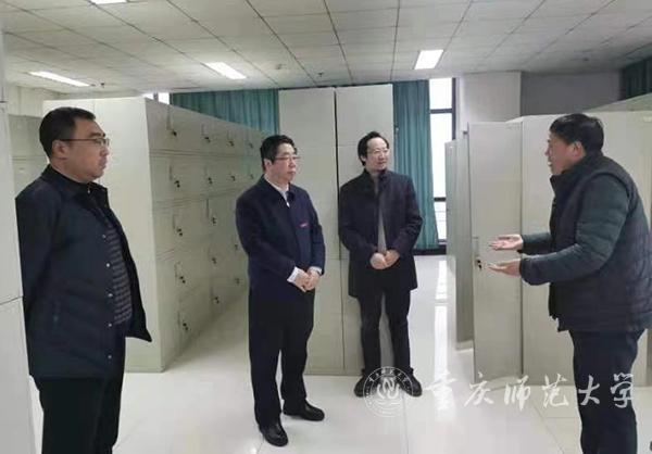1月20日下午,校长孟东方带领党政办主任陈进东、发展与规划处处长程新平、对外联络与合作中心副主任李科一行,对学校档案馆库房、办公场地等进行了视察,档案馆馆长杨云陪同介绍。