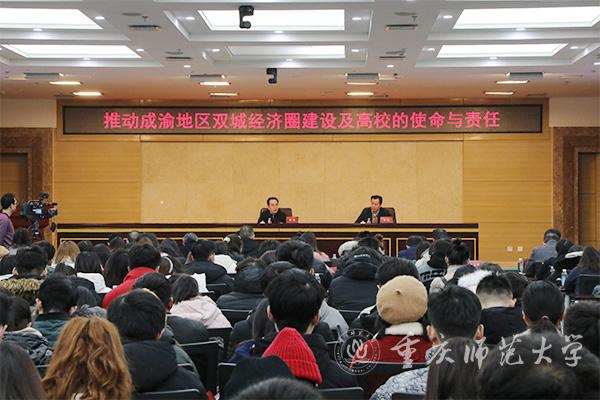 张鸣从“成渝地区”“双城”“经济圈”三个关键词入手,深刻阐述了建设具有全国影响力的重要经济中心、科技创新中心、改革开放新高地和高品质生活宜居地等“两中心、两地”的战略定位。结合川渝两地自古“一家亲”的历史渊源,深刻分析了推动成渝地区双城经济圈建设的重大意义,提出要全面贯彻落实《成渝地区双城经济圈建设规划纲要》,准确把握9项重点任务,在科技、生态、基础设施、产业等发展方向上集中精力做好自己的事、齐心协力办好合作的事,发挥“1+1>2”的作用,实现高质量发展。张鸣指出,高校要紧紧抓住这一重庆发展的重大历史性机遇,立足人才培养本职,发挥科学研究优势,拓展社会服务空间,活跃文化创新氛围,加强校际协同发展,为国家重大战略提供人才保障、科技支撑、智力支持、精神动力,在推动成渝地区双城经济圈建设中展现高校担当、高校作为。