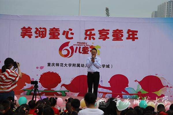 在附属幼儿园、附属实验小学,付长波主任参加了学校庆祝六一文艺活动,并将礼物送到了孩子们的手中。