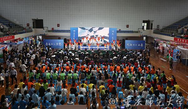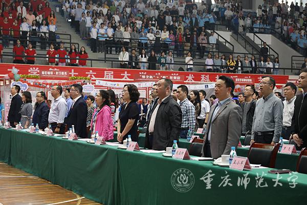 之后,创新创业团队代表——重师绿创团队、志愿服务团队代表——关爱抗击新冠疫情医护人员子女爱心辅导团队依次上台展示,音乐学院为现场观众带来原创抗疫歌曲《致敬勇敢的逆行者》,精彩表演应接不暇。开幕式在原创歌舞节目《青春你我》的动感表演中画上完美句号。